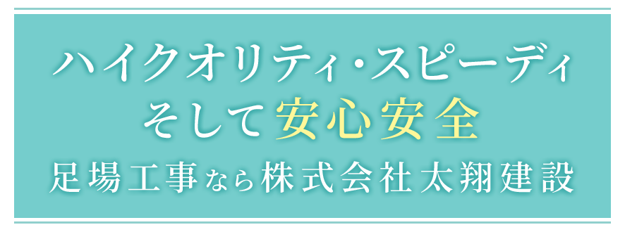 法人さまはもちろん個人さまからのご相談も歓迎しますので、足場工事の業者をお探しの際は株式会社太翔建設までお気軽にお問い合わせください。